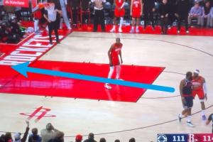 下一个回合,一样的情况,哈登继续指挥队友去接球,小卡跑回来接,这次没失误。