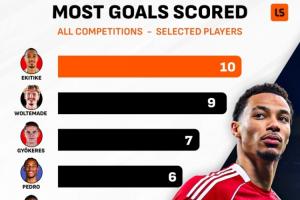 体育资讯12月23日讯 上周末英超第17轮比赛结束,英国媒体LiverScore列出了本赛季英超部分新援前锋的进球数,埃基蒂克打入10球排名第一。