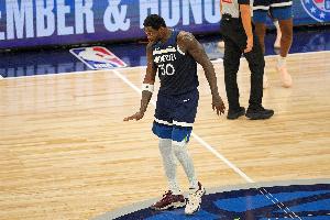 森林狼球员兰德尔本场比赛在前三节表现平平的情况下,第四节突然爆发,他面对唐斯打得相当强势,多次利用身体强攻得手,单节砍下17分帮助球队锁定胜局。