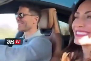 阿隆索的妻子最近分享了一段夫妻俩度假的视频,并走红网络,视频中哈维·阿隆索负责开车,看起来心情不错。