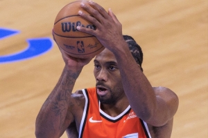 本场比赛,莱昂纳德出战39分钟,26中17、其中三分10中5、罚球17中16,砍下55分11板2助5断3帽。