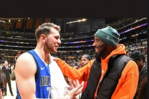 体育资讯12月30日讯 6年前的今天,湖人主场108-95击败独行侠,赛后科比和东契奇寒暄合影。