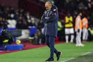 体育资讯01月07日讯 今天凌晨,英超第21轮,西汉姆联在主场1-2遭诺丁汉森林绝杀,球队距离英超保级安全区高达7分。