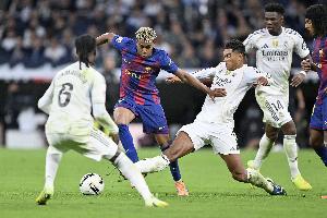 西班牙国家德比将连续4年在西超杯决赛中上演!上赛季西超杯决赛,巴萨5-2皇马夺冠,拉菲尼亚2射1传,什琴斯尼染红,姆巴佩和罗德里戈也取得进球。