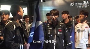 体育资讯1月9日讯 今日LCK季前赛开赛,在选手通道中曾于JDG一同效力的Kanavi和Ruler见面,Kanavi开口就调侃Ruler(刚从训练所军训归来)现在寸头的造型很帅。