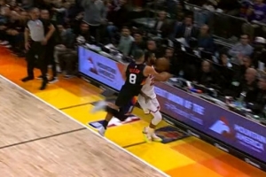 GIF-伊戈达罗将球捅到布里奇斯身上出界,尼克斯挑战失败,太阳球权