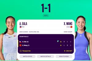 体育资讯01月10日讯 WTA250奥克兰站女单半决赛,王欣瑜vs埃亚拉。