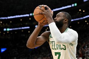 此役,杰伦·布朗出手很多,但效率不佳。在出战的43分22秒时间里,布朗28投11中,三分11投5中,没有罚球,得到27分8篮板7助攻,另有5次失误4次犯规,正负值为 -1。