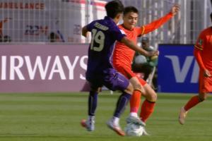 徐彬上前抗议,裁判示意吾米提江踩脚犯规