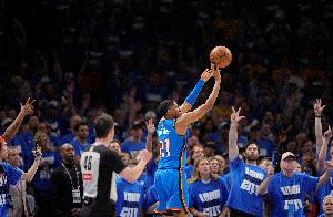 雷霆球员维金斯本场先发出战在攻防两端有着全面发挥,进攻上他手感不错效率很高,防守更是相当给力多次抢断。