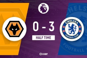 上半场伤停补时5分钟,半场结束,切尔西暂3-0狼队。