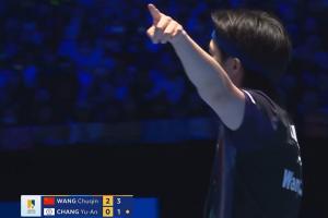 体育资讯02月08日讯 乒乓球海口亚洲杯男单半决赛,王楚钦对阵张佑安,本场比赛王楚钦又多次被看台上的闪光灯影响。