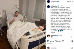 体育资讯2月10日讯 格拉利什更新社媒动态,确认成功完成手术。