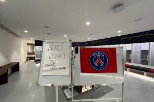巴黎全队还在白板上写道:“谢谢多哈!来自巴黎圣日耳曼——洲际杯冠军。”